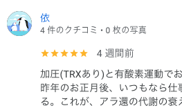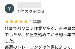 つまり2人に1人が1年後も継続できている計算です。さらに多くの会員様が3年・5年・10年・15年。。。最長は創業当初からの17年継続の方も。継続・習慣化しやすいトレーニング法だといえます。