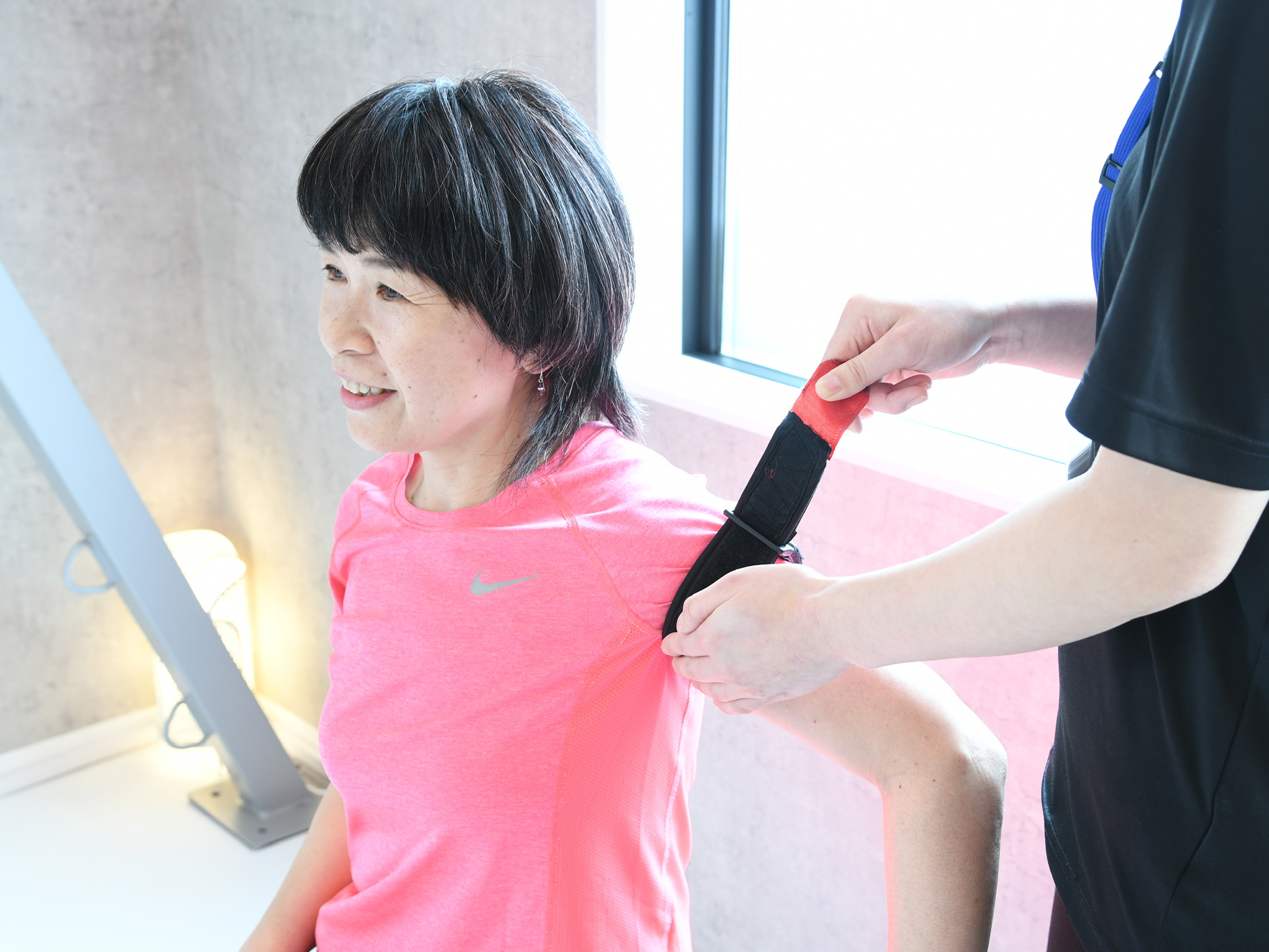 まずは加圧ベルトにも慣れていただくため、あなたにとって適正な加圧ベルトの圧を調整します。メニューも少しづつ説明を交えながら始めます。