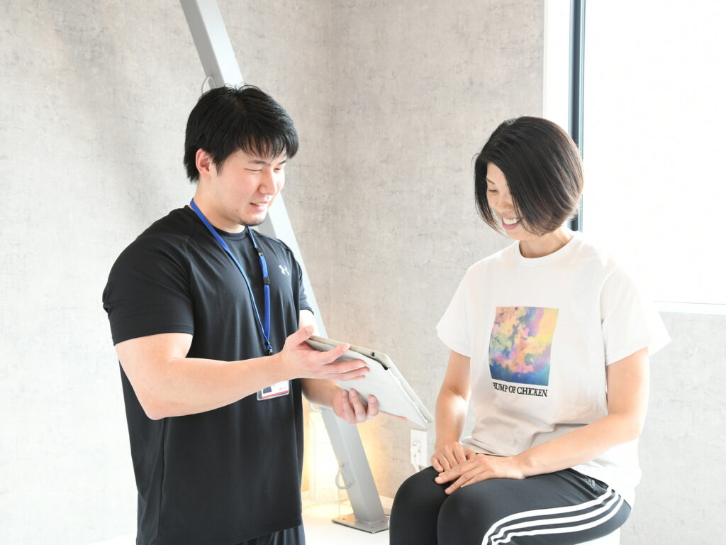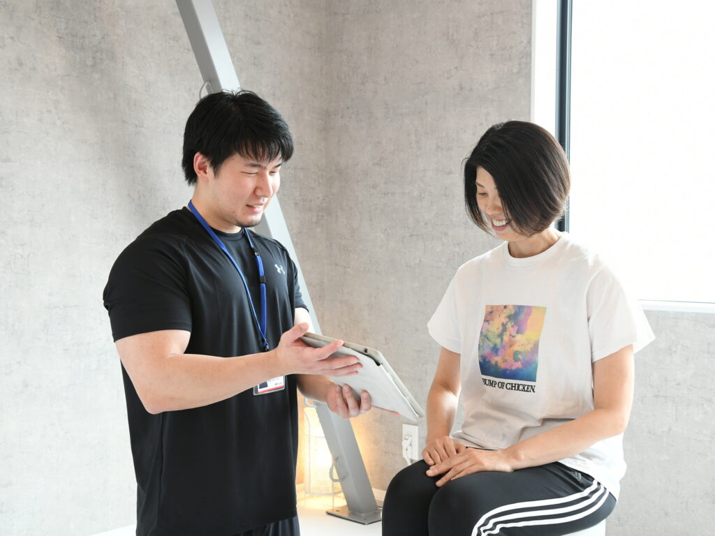 お客様の身体の状態や目標は、カウンセリング時にしっかりとお伺いいたします。その情報をもとに最適なトレーニング内容をご提案させていただきますのでご安心ください。特にご心配な点や不安なことがございましたら、体験トレーニングの際に担当トレーナーへお気軽にお伝えください。
