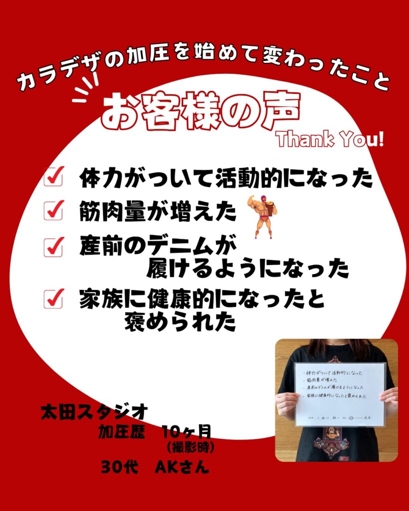 「体力がついて活動的になった」30代女性 AKさん 加圧歴10ヶ月(撮影時)