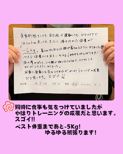 マキシーさん 50代 女性・加圧歴 12ヶ月