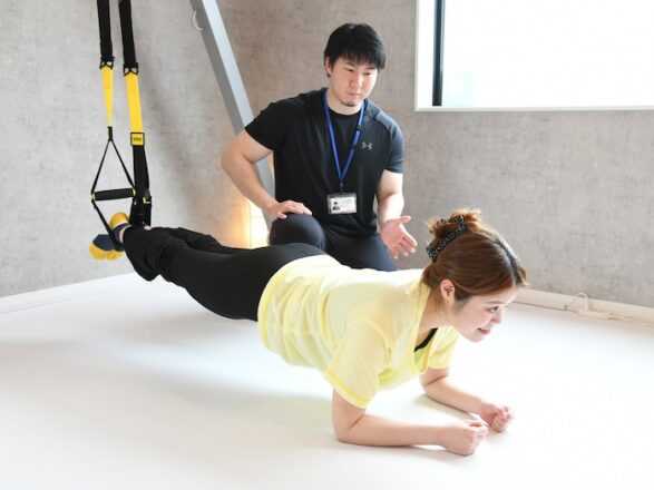 TRX(天吊りの器具)を用いた体幹トレーニングも体験できます。