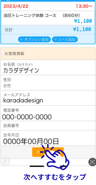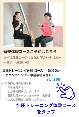 「体験コースお申し込み」ボタンから予約受付をいたします。