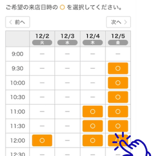 予約サイトの空き状況カレンダーより初回体験の日時をお選び頂きます。