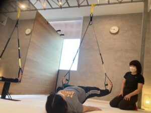 加圧トレーニングと併せて行うととても効果的で相性のいい器具「TRX」。