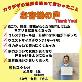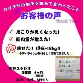 Y・Uさん 加圧歴 2年10ヶ月 基礎体力の向上と肩こり腰痛改善の為に始めました。 週一ですが、インストラクターさんにマンツーマンで指導して頂け、 トレーニング開始前の体調確認を始め、 自分のペースに合ったトレーニングの組立てなので無理な...